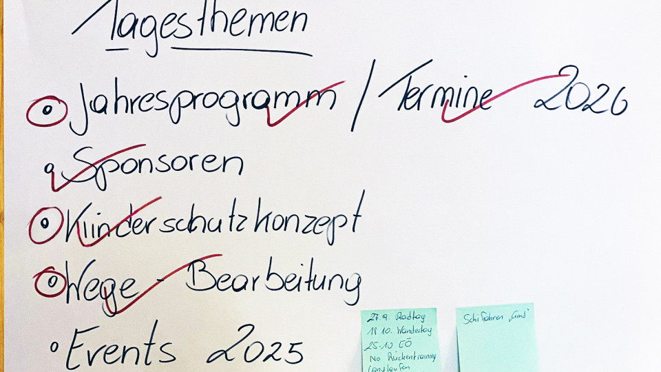 Innerhalb von wenigen Stunden haben wir jedenfalls nicht nur das Jahresprogramm für 2026 zusammengetragen und mit über 40 Outdoor-, Sport- und Freizeitaktivitäten den Kalender gefüllt. Manuela hat uns das Kinderschutzkonzept vorgestellt, mit uns durchbesprochen und es wurden von allen Aktiven unterzeichnet. Wir haben an den Kommunikationskanälen gefeilt, die internen Termine fixiert, die unzähligen "Baustellen" an den Wanderwegen zusammengetragen und deren Behebung verteilt.