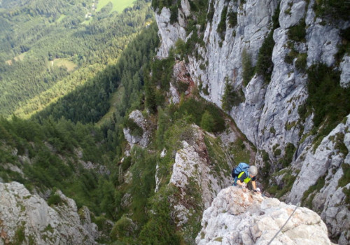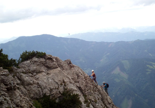Gemeinsam klettern wir über den Franz Scheikl-Klettersteig mit der maximalen Schwierigkeit von “C” auf den 1720 Meter hohen Hochlantsch.